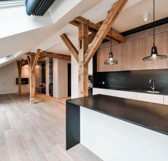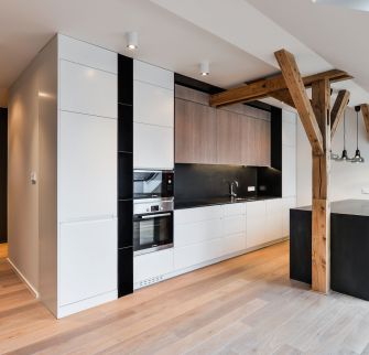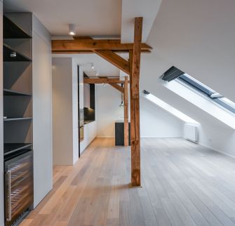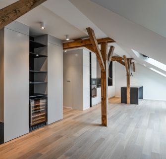 Located in the heart of fashionable Vinohrady, this is an airconditioned attic apartment complimented by great views over one of the most prestigiouus Prague´s Squares and a masterpiece of modern architecture, the Church Of The Most Sacred Heart Of Our Lord, the work of a noted Slovene architect Jože Plečnik. Fabulous in town location, ideal for leisure and entertainment, as it is within walking distance of all the key attractions in Prague. Rich social life, exquisite restaurants, chic cafés and small shops, large parks, unique architecture gems create an unforgettable local atmosphere.The area is well served by public transportation: a subway station on the A-line, tram stops are just a few steps from the building, very accessible main road arteries close by. Location "Royal Vinohrady" is high up on many wish lists.