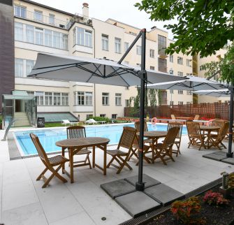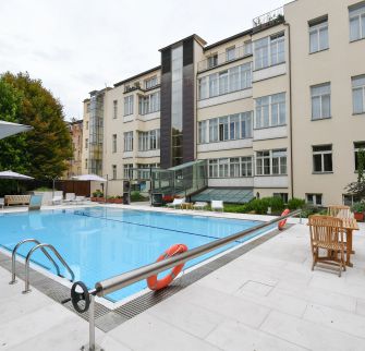 For the Tenant´s comfort the residential building is equipped with a leisure zone - an outdoor heated swimming pool equipped with hydro massage and the sauna. A blooming garden where you can feel genuinely at home, far from traffic, stress and problems of everyday life.