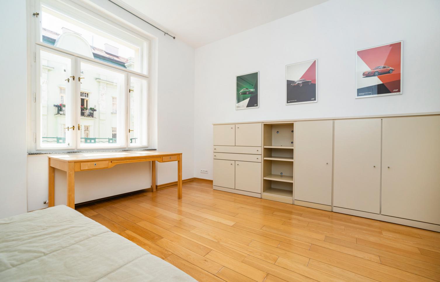 Main features: high ceilings, large windows, renovated parquet flooring, marble tiled floors in the bathrooms, washer, dryer, ceramic hob, dishwasher, Cable and satellite TV. Tenant´s fees: utility/service charges 8 500 Kč/month. Optional secure parking at extra fee: 5.000 Kč + VAT. Available for long term rentals 68 000 Kč / 2 768 EUR. Furnished or unfurnished.