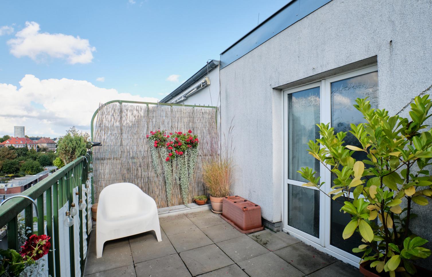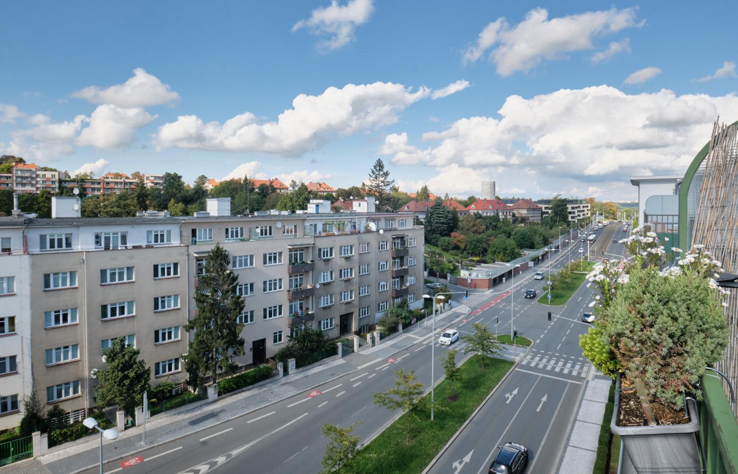 Cosy, fully furnished studio apartment with a terrace set on the 5th floor of a residential building with a lift. Great location in close vicinity of the Prague Castle and the popular Ladronka Park, with quick connections to the city center (tram, bus - about 7 min. to Hradčanská metro). Convenient to the airport.
